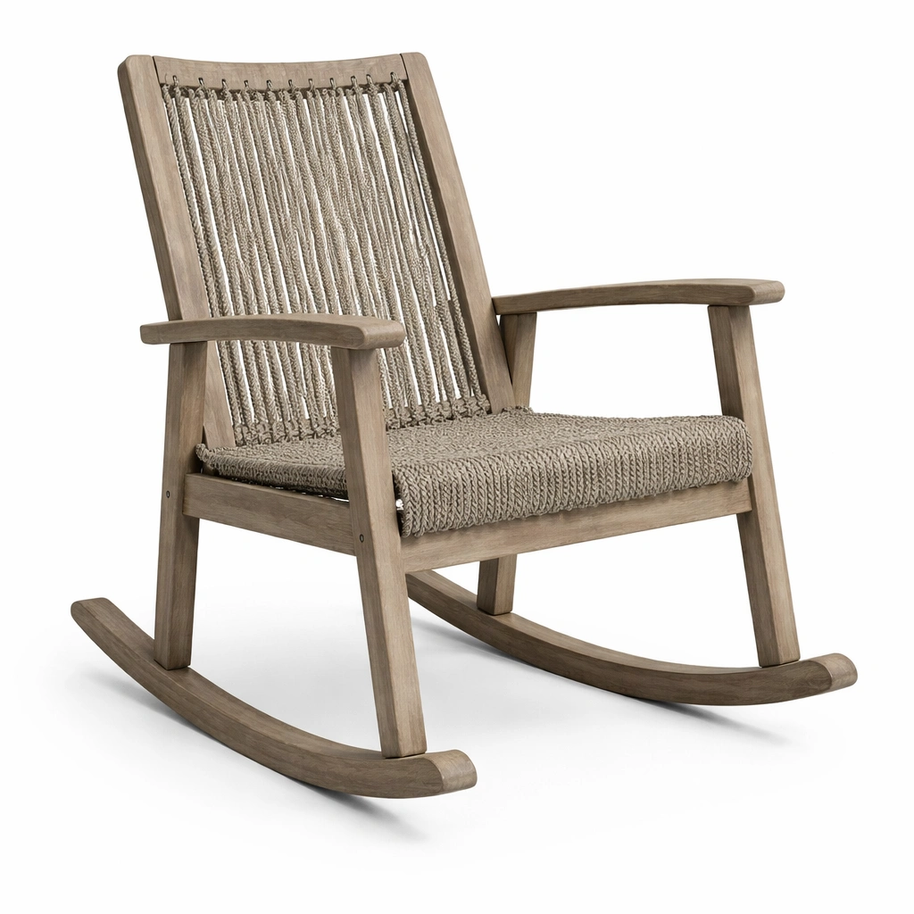 Mecedora de madera y cuerda de poliéster beige para interior y exterior