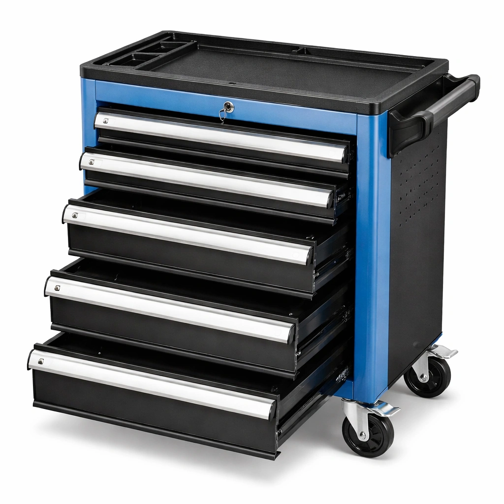Carro de herramientas para almacenamiento y movilidad en talleres y garajes.