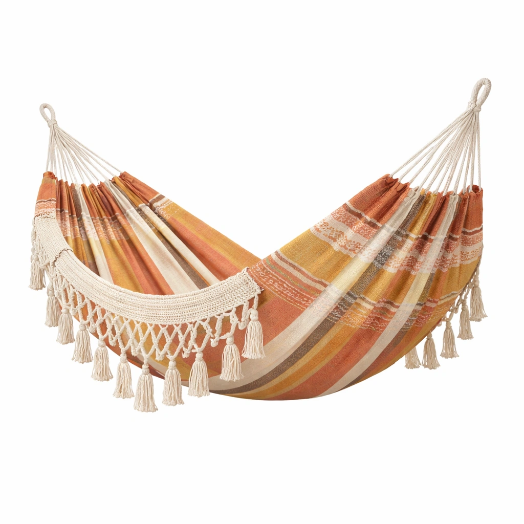 Material: 100% algodón con diseño de rayas y detalles de flecos.